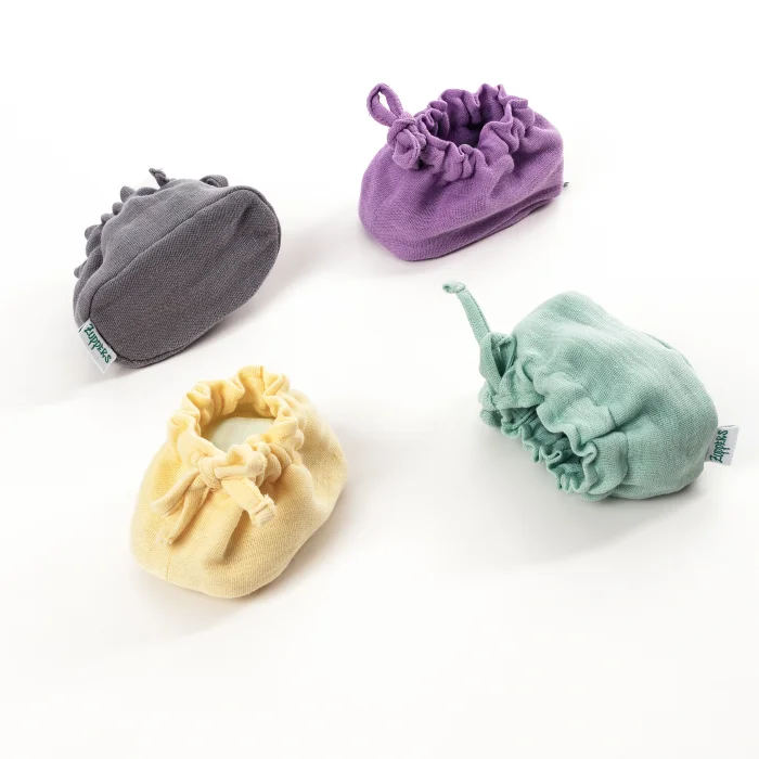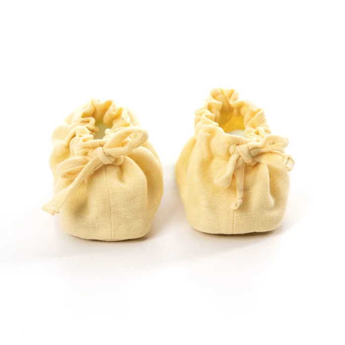 Our muslin booties are handcrafted from 100% cotton. It provides maximum comfort and elegance with its special form that does not come off the foot. With the ankle attachment feature, babies' feet remain covered. With 4 layers of weaving, our booties have a self-shrinking texture after washing. It is GOTS certified. Even the woven label is made of 100% cotton. Product Details:0-1 Years 100% Organic Cotton Designed and manufactured in Turkey. Wash at 30 degrees with similar colors.