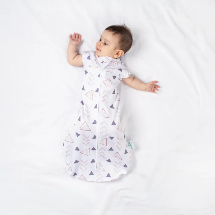 The Baby Swaddle Sleeping Bag is worth 0.3 Tog. It is made of organic cotton and is GOTS certified. With its two-way zipper and sleeve snaps, you can swaddle your baby in seconds. If you wish, you can also use it with the arms open. It is in the form of a swaddle in accordance with your baby's position in the mother's womb, it wraps your baby's chest; It calms and reassures. It reduces sudden startles due to the Moro reflex, which is seen especially in the first months and causes babies to wake up frequently.0,3 Tog sleeping bag at room temperature of 21-24 degrees with a long-sleeved bodysuit and bottom pajamas/trousers; with a half-sleeved or sleeveless bodysuit at room temperature of 24-26 degrees; You can wear a sleeveless bodysuit at room temperature of 26 degrees. It does not restrict your baby's movements with its fabric that stretches on both sides. With its pouch-shaped design, it prevents hip dislocation and allows the legs to move freely. Thanks to its natural fabric, it keeps the baby's body temperature constant at room temperature compatible with the tog value and prevents it from getting cold. It offers your baby a safe and comfortable sleep without a blanket. With its two-way zipper, you can check the diaper and change the diaper without waking your baby. Zipper guards are designed so that the zipper start and end points do not hurt your baby's skin. Arm snaps do not contain nickel. Thanks to its snap fasteners that can be opened and closed, it facilitates the transition from swaddle to sleeping bag. There is an extra layer of cotton snap protection that prevents the snaps from touching your baby's skin. Since the sleeping bag needs to sit and wrap around your baby, we recommend that you buy the product that is suitable for your own size. The product size chart is as follows; Body Measurements: 0-3 months shoulder to foot Product length: 59 cm - Bust: 22 cm Weight: 2.5-6 Kg 3-6 months shoulder to foot Product length: 64 cm - Bust: 23 cm Weight: 6-9 Kg 6-12 months Shoulder to foot Product length: 74 cm - Bust: 25 cm Weight: 9-12 Kg Content: 95% Organic Cotton 5% Ellastene Produced in Turkey. Since the product is produced from organic cotton yarn with natural ingredients, color changes can be seen due to washing and use. (Washing with fabric softener, using baby oil, washing at high temperature, etc.
