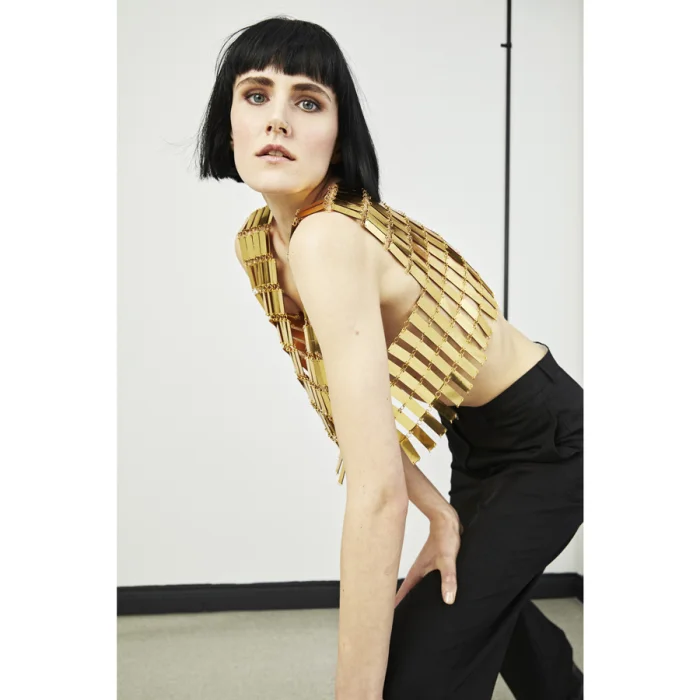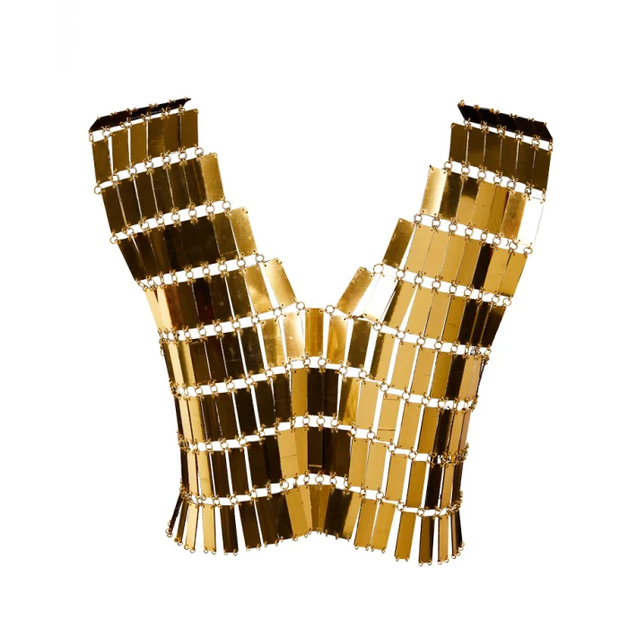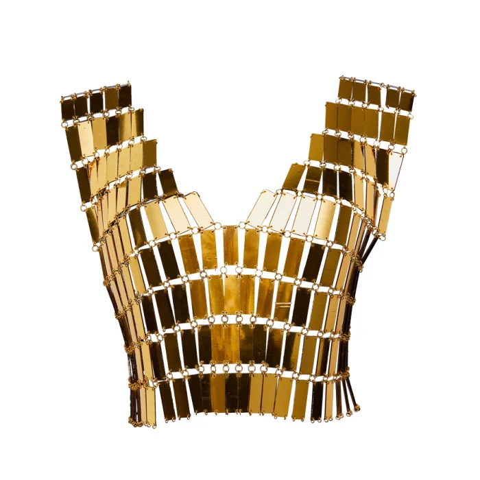 Luminous Harem Suare, produced by knitting mirror-shaped plates with rings, can be worn quite comfortably by combining bare skin and clothing.
