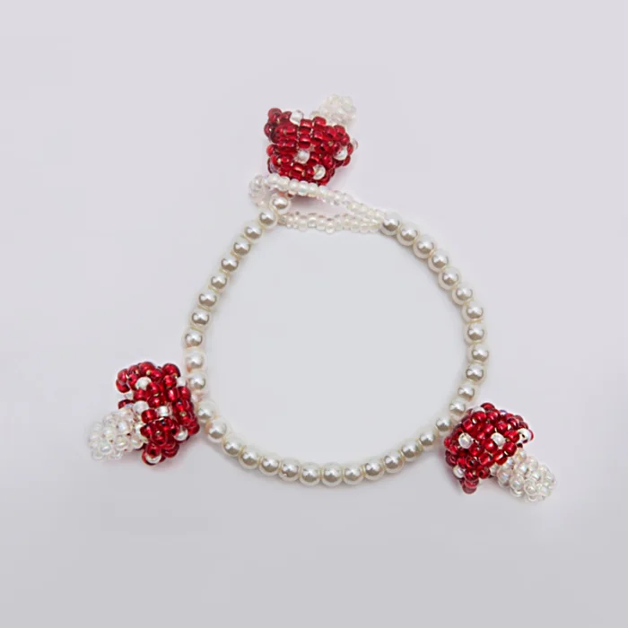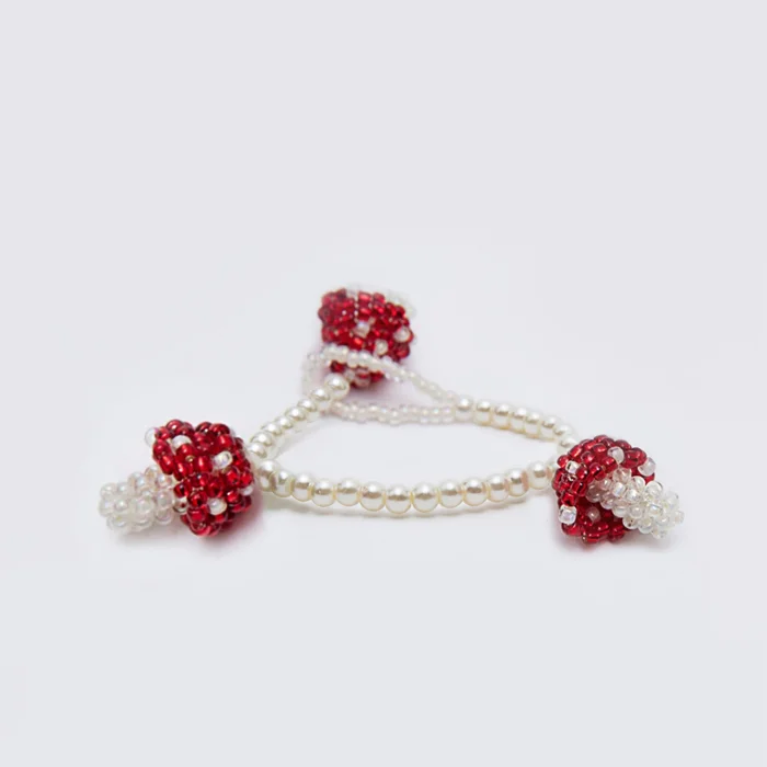 It is formed by knitting millimetric glass sand beads with fishing line for long hours. Custom design, Handmade.
