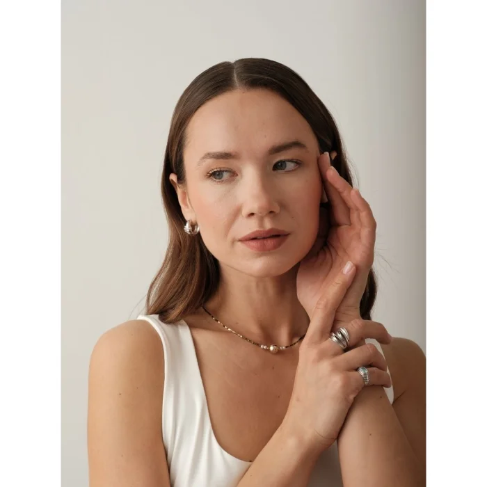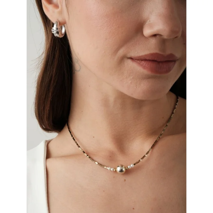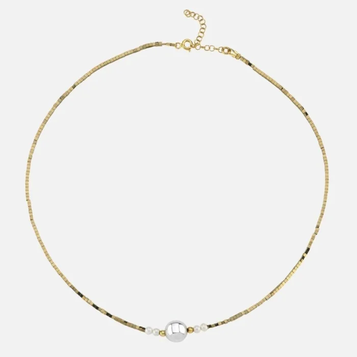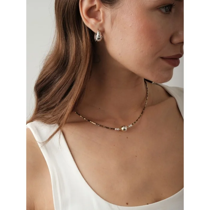 Product: Asel Silver Ball Pearl Hematite Stone Necklace