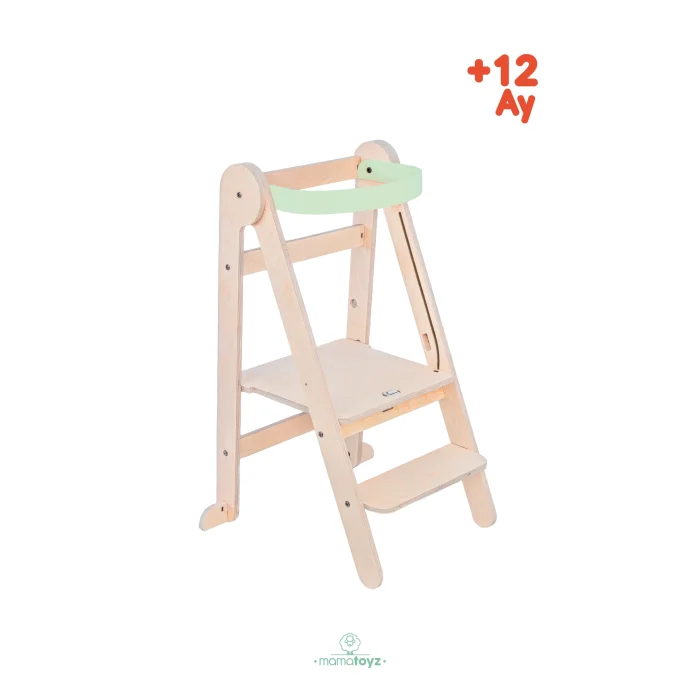 Fold is a learning tower that allows Babies to make cakes and pies with their parents in the kitchen. With its folding feature, it not only provides space for narrow spaces when not in use, but also provides convenience when moving from one room to another. It can be used easily from 12 months to 5 years old with its 3 adjustable heights. Fold is made of natural wood material and birch wood is used in its construction. For this reason, no chemicals are found in the product. There are no sharp corners in the product that may harm or pose a risk to your baby. You can use it with peace of mind and contribute to your baby's learning process.