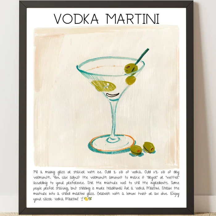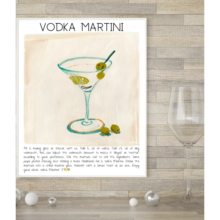 Product: Vodka Martini Art Print Cocktail Design Poster No:2