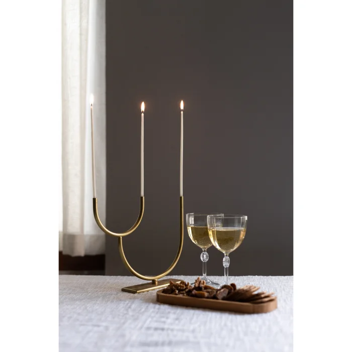 A vintage and romantic touch to table presentations with the three-armed minimal candlestick.